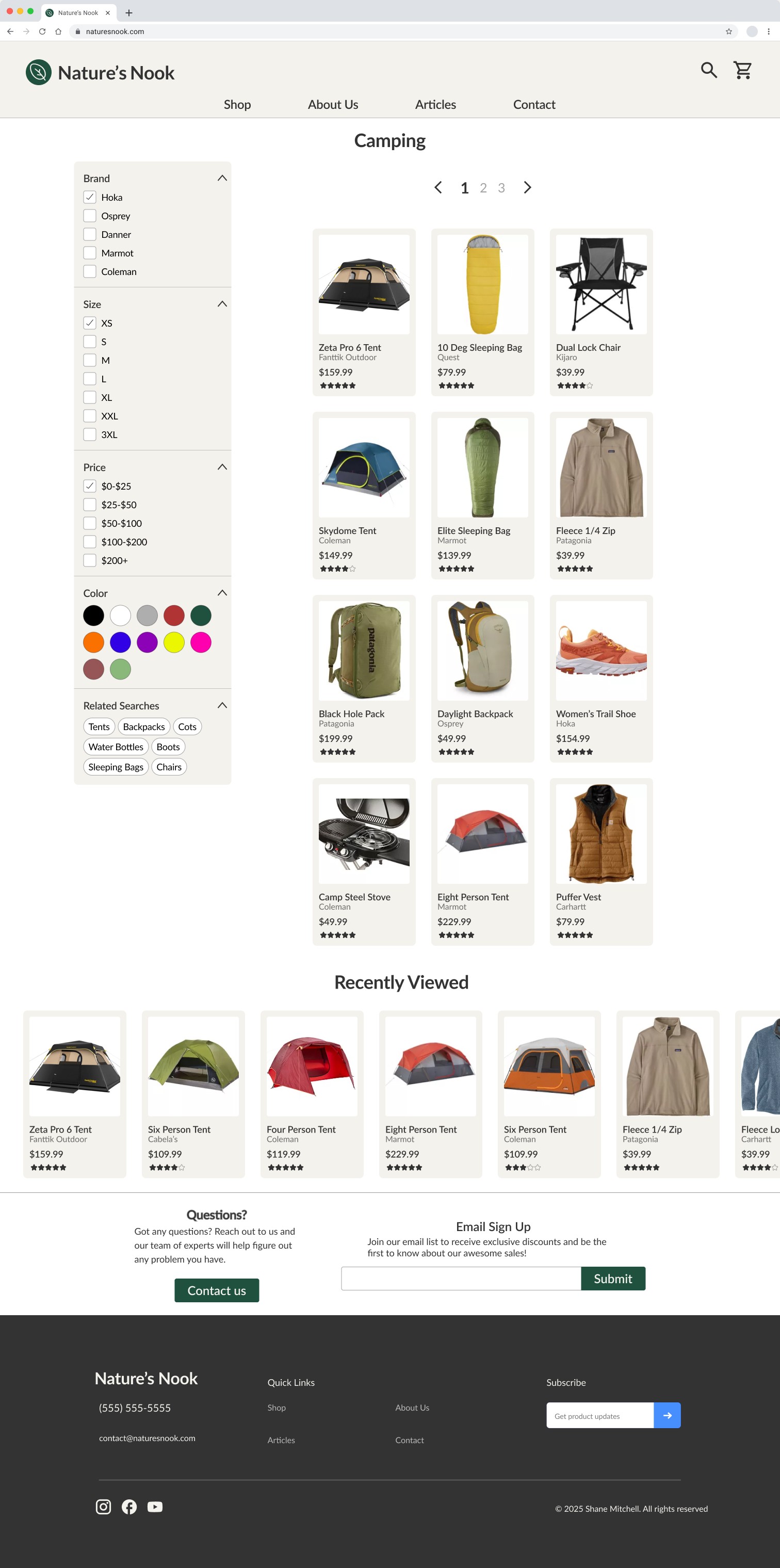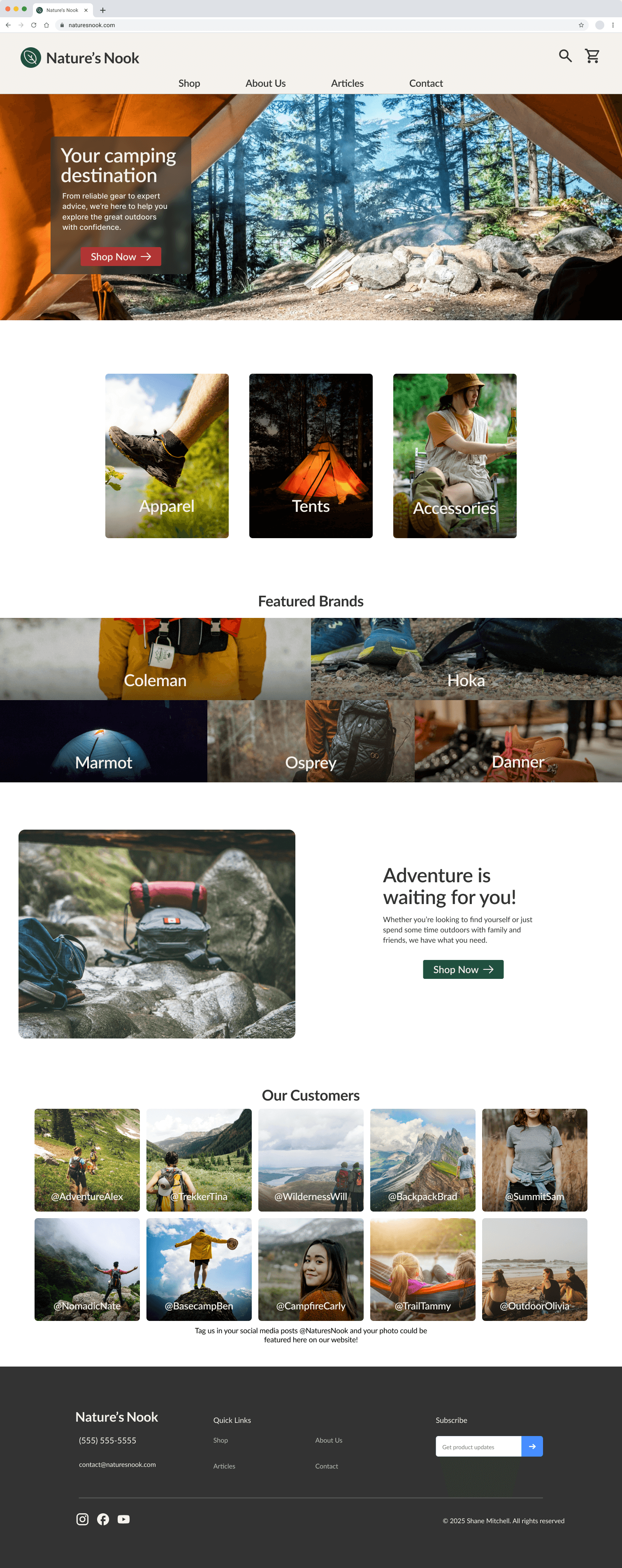 A fully responsive website design for an outdoor retail business. Focuses on easy navigation and quick checkout process.