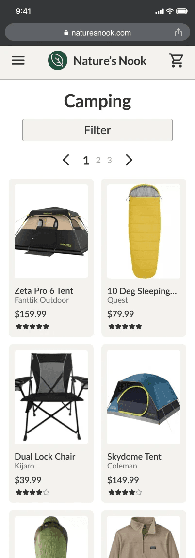 Add more filters so that users may narrow down their search to specific categories or specific items like tents/sleeping bags/backpacks.