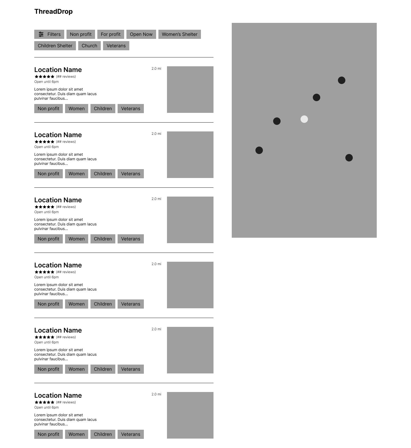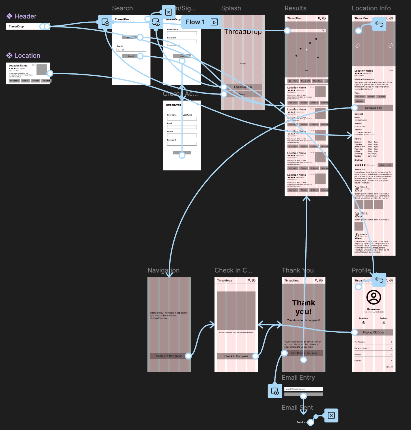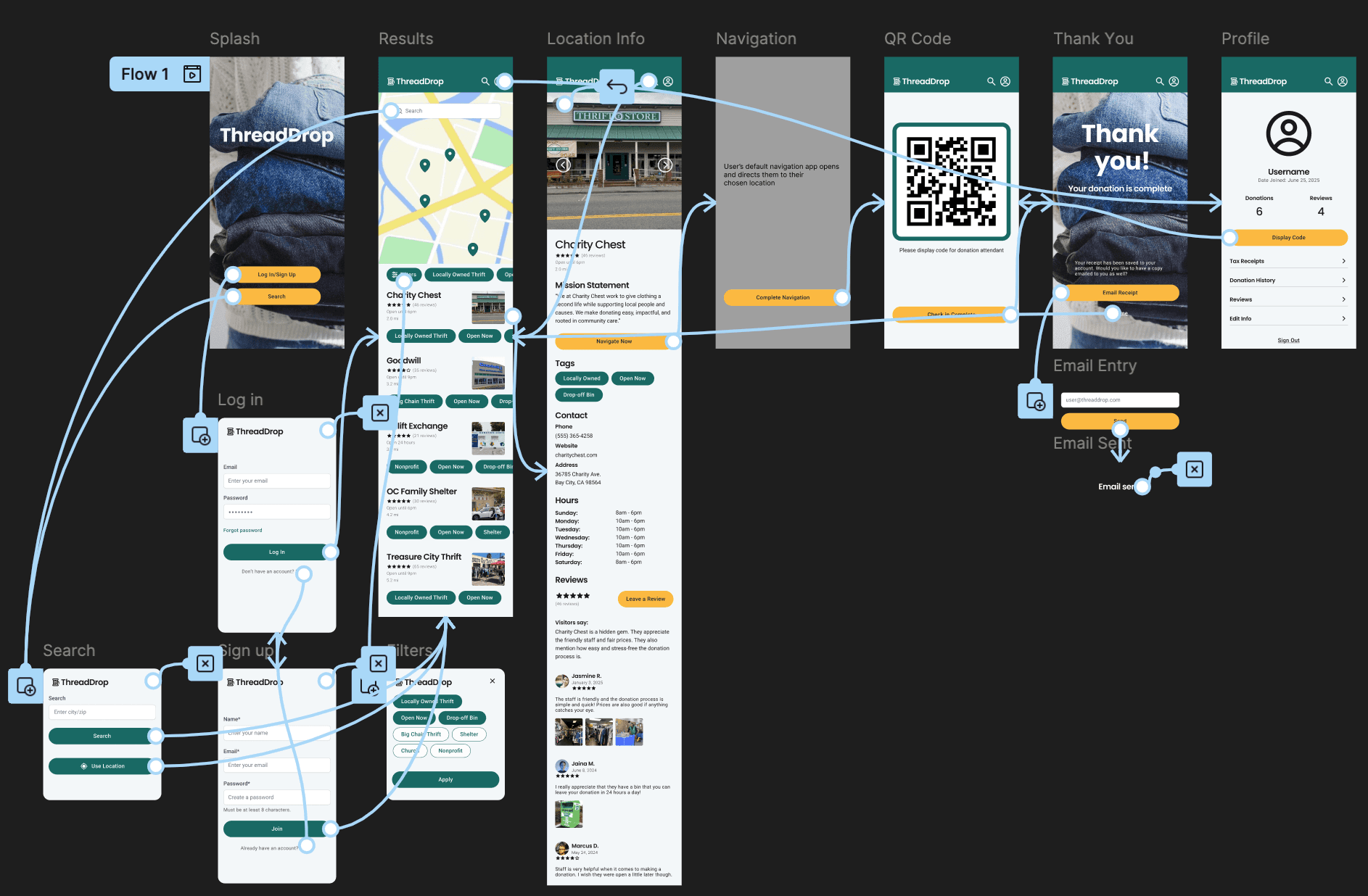 With user research as the basis, I began drafting paper wireframes that included the core features that had been identified as most desired. Designing mobile first was a priority as most users would likely be using ThreadDrop on their phones.